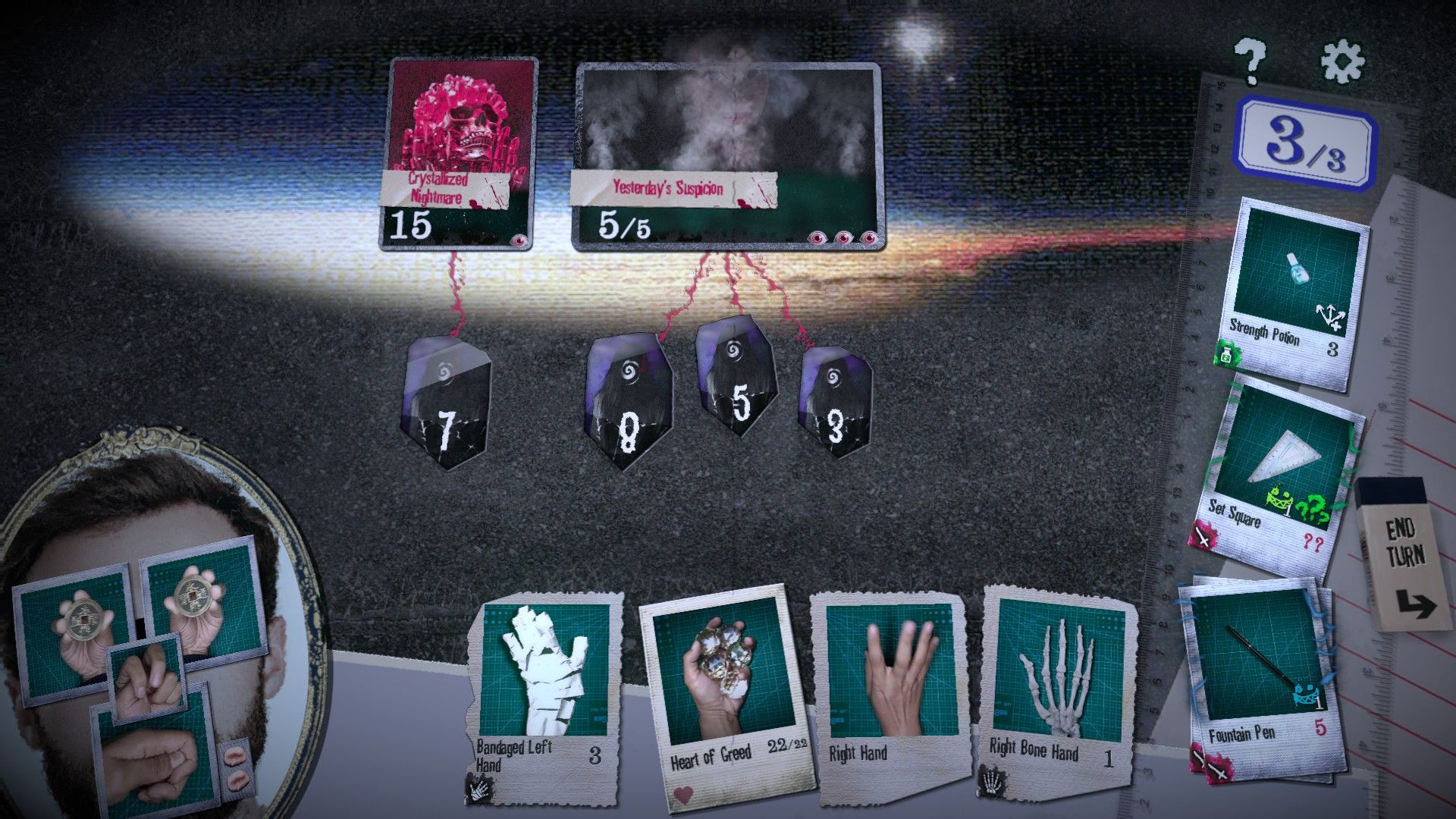 Ваша колода построена вокруг трёх типов карт – Действие, Тайна и Логика – и ваш выбор покажет, какой тип вы предпочитаете. По мере игры эта предпочтительность будет ограничивать доступные вам карты, изменяя их работу и в конечном итоге влияя на исход истории. Когда придет время сражаться, вы будете использовать карты, представляющие повседневные предметы, такие как ластики и ножницы – и некоторые более странные предметы – в качестве оружия, чтобы победить своих врагов.