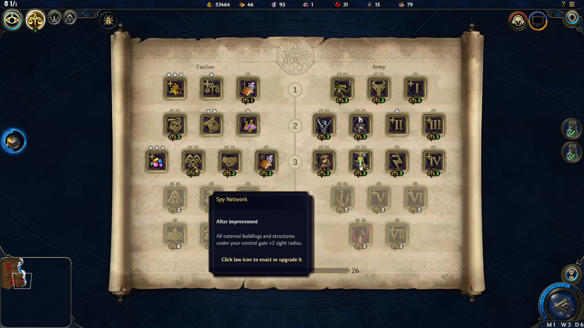 Как фанат, я действительно рад новой системе Законов! По сути, это похоже на дерево технологий, что просто потрясающе. Вы зарабатываете эти очки и можете потратить их, чтобы дать своей фракции серьезные преимущества. Вы можете инвестировать в такие вещи, как ежедневные бонусы к золоту и ресурсам, или даже снизить стоимость материалов. Есть также перки, чтобы сделать ваших героев сильнее. Но дело не только в экономике — вы также можете использовать Законы, чтобы усилить свою армию, улучшить конкретные юниты или увеличить скорость роста вашей армии каждую неделю. Ощущение, что есть много интересных стратегических выборов!