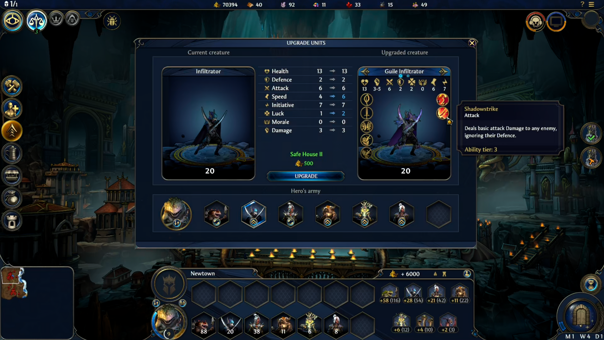 Честно говоря, эта подсистема навыков имеет так много мелких деталей при повышении уровня героев, что я часто выбирал навыки, чтобы помочь продвинуть класс своего героя — что является новой функцией — вместо того, чтобы сосредотачиваться на том, как навыки работают вместе. Однако я не чувствовал перегрузки, потому что каждый навык был полезен в той или иной степени. Я смог пройти режим Одиночного Героя, где вы управляете только одним героем, используя прямолинейный подход и создавая очень большую армию. Это было на удивление эффективно!