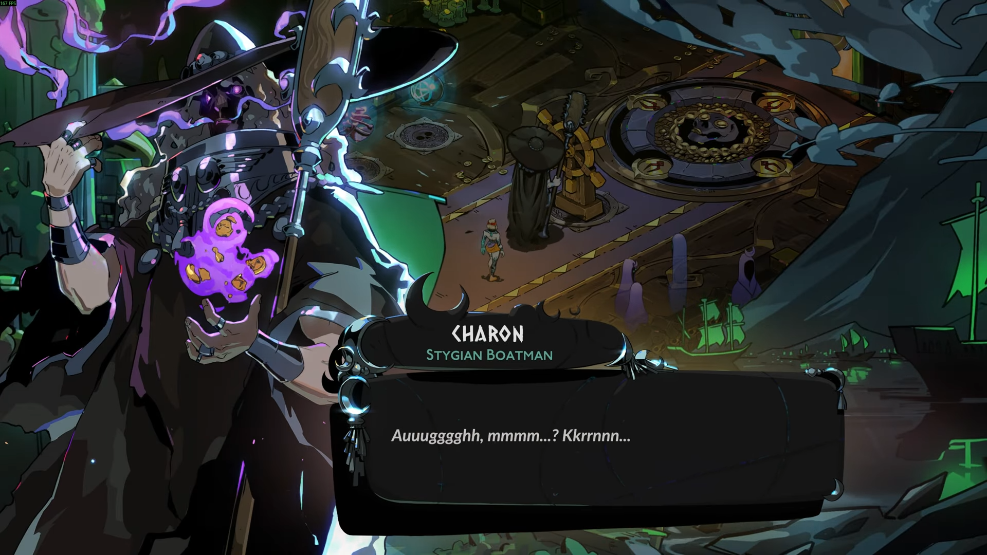 Харон вознаграждает игроков очками Обола – небольшими чёрными картами – за регулярную покупку предметов во время прохождений. После траты в общей сложности 1000 монет с ним вы получите свою первую золотую карту, и он продолжит давать вам ещё одну золотую карту за каждые дополнительные 1000 потраченных монет.