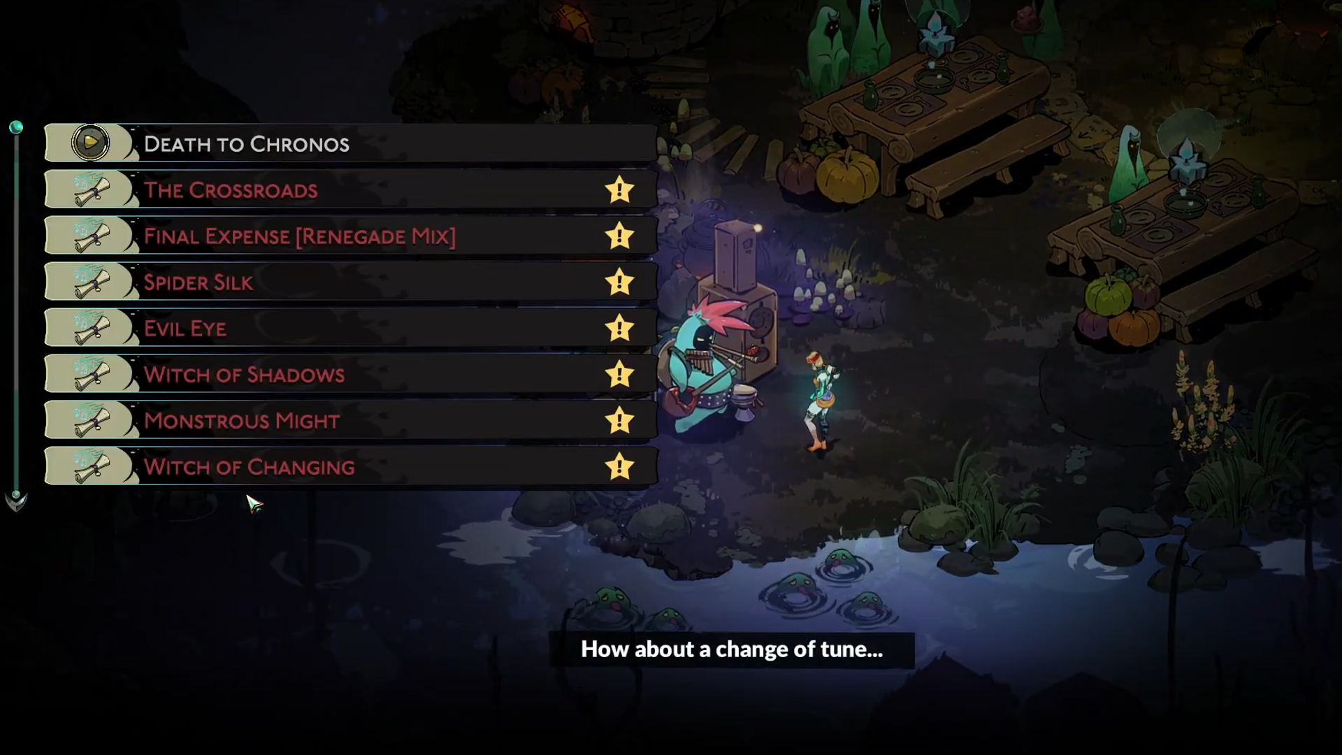 На следующую ночь вы можете снова пообщаться с Дорой и начать обменивать Kudos на новые косметические предметы. Если вы встретили Music Maker, вы также можете потратить Kudos, чтобы разблокировать новые музыкальные треки.