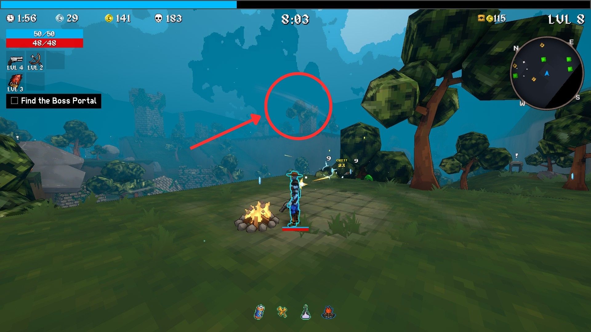 Здесь полезная функция мини-карты поможет вам. Как только вы найдете портал босса в Megabonk, он появится на вашей мини-карте, если вы отойдете от него.