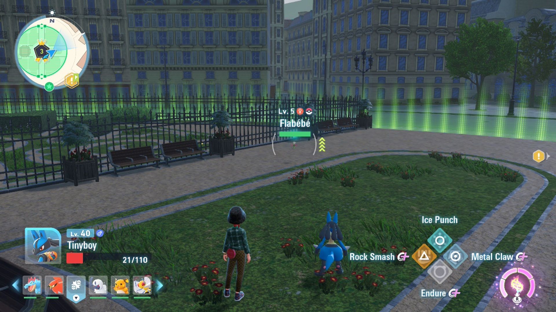 Начиная с места, где вы обнаружили Пикачу, вы заметите широкое открытое пространство, простирающееся по всей Дикой Зоне 3. Если вы проследуете по этому пути до самого конца, вы найдете Флабебе, милого Покемона Волшебного типа.