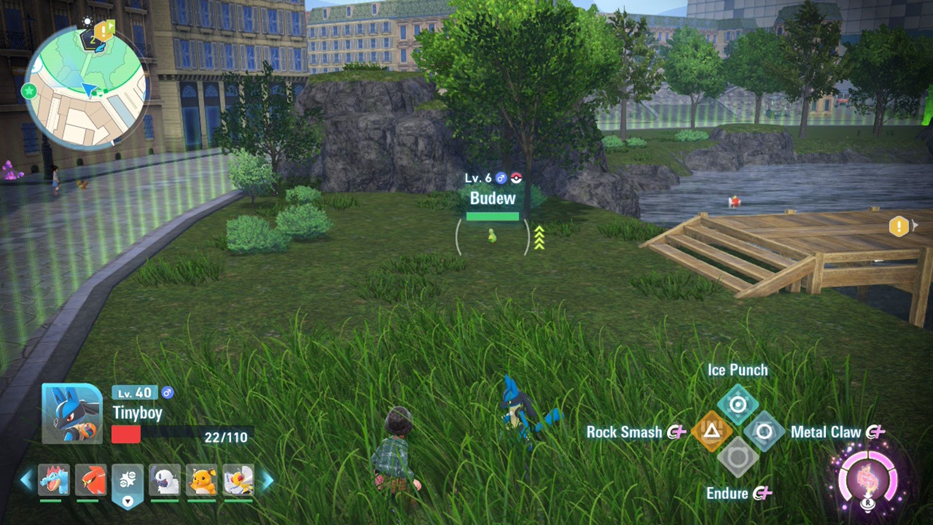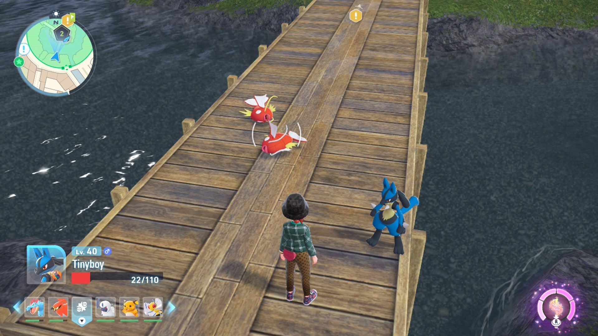 Как только вы получите Budew, вы наткнётесь на мост, где найдёте Magikarp. Они быстро заметят вас и выпрыгнут, чтобы вступить в бой.
