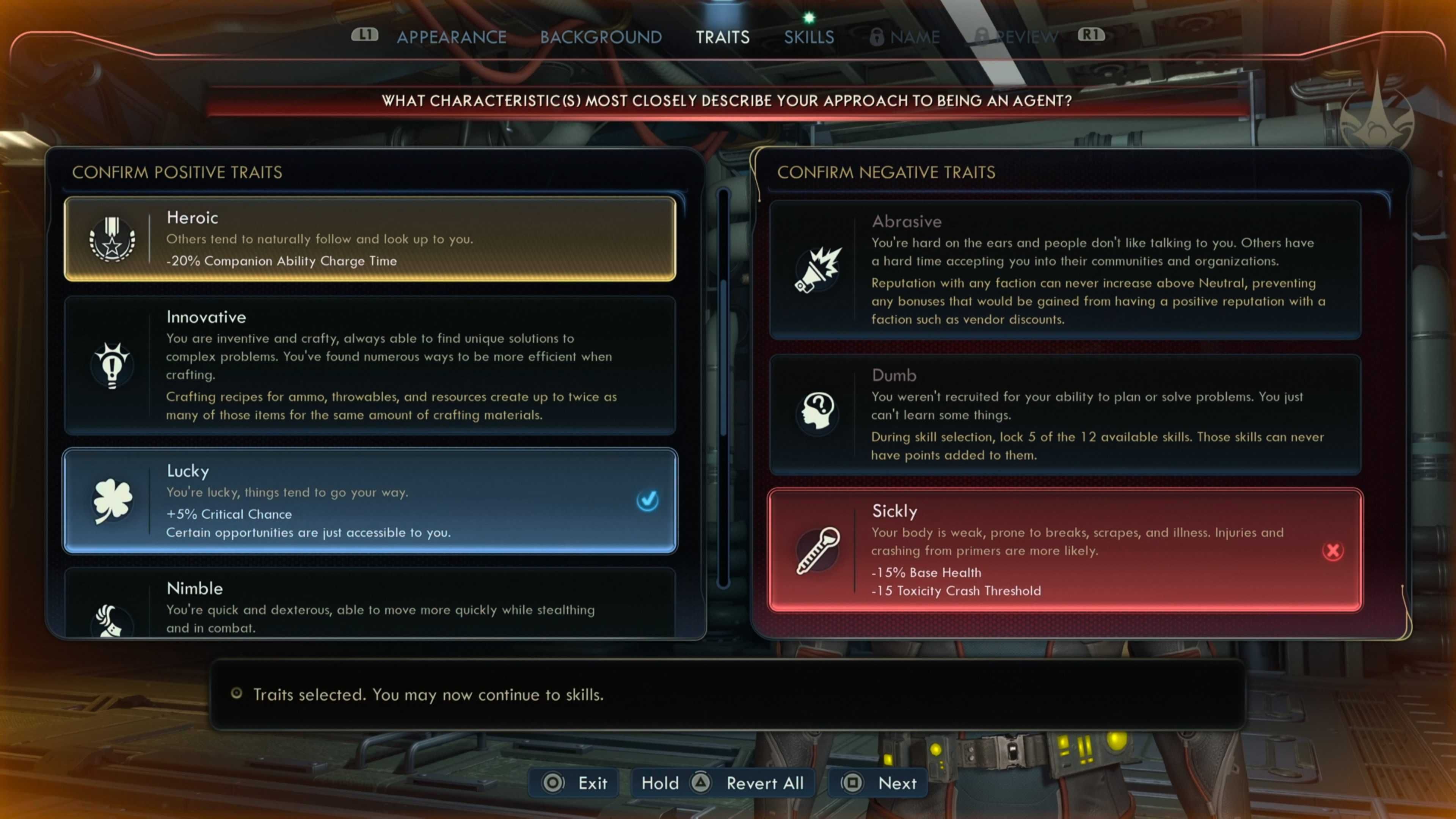 Читать разборы экспертовЭта система заметна с самого начала. При создании персонажа вам предстоит выбрать предысторию, навыки и черты характера, которые предоставляют преимущества. Однако, каждый положительный выбор также влечет за собой недостаток.
